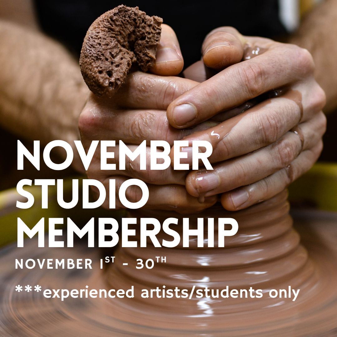4 Monday afternoons in November from 1pm to 3pm (on November 3rd, 10th, 17th, we’ll skip the 24th for Thanksgiving, & the last class is on December 1st), and your free studio membership will run until the last day of November.